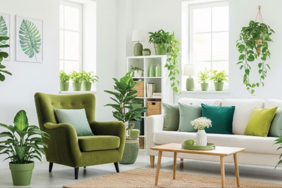 3. طراوت بهاری با سبز و سفید: این ترکیب، حسی از شادابی و سرزندگی را به فضا میآورد. رنگ سبز که نماد طبیعت و رشد است، در کنار سفید، فضایی روشن و آرامشبخش میسازد.