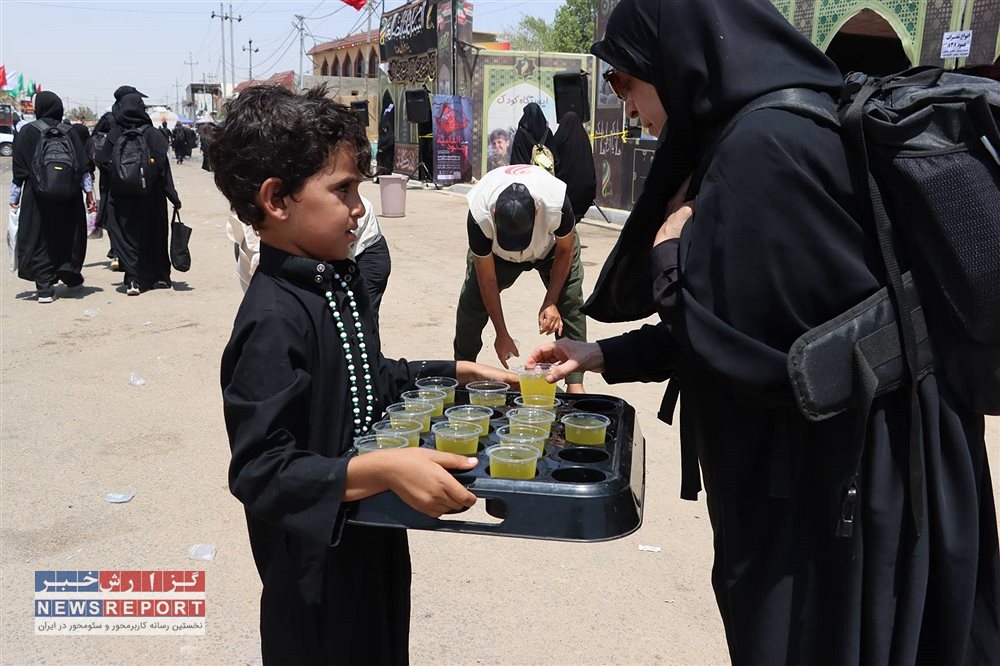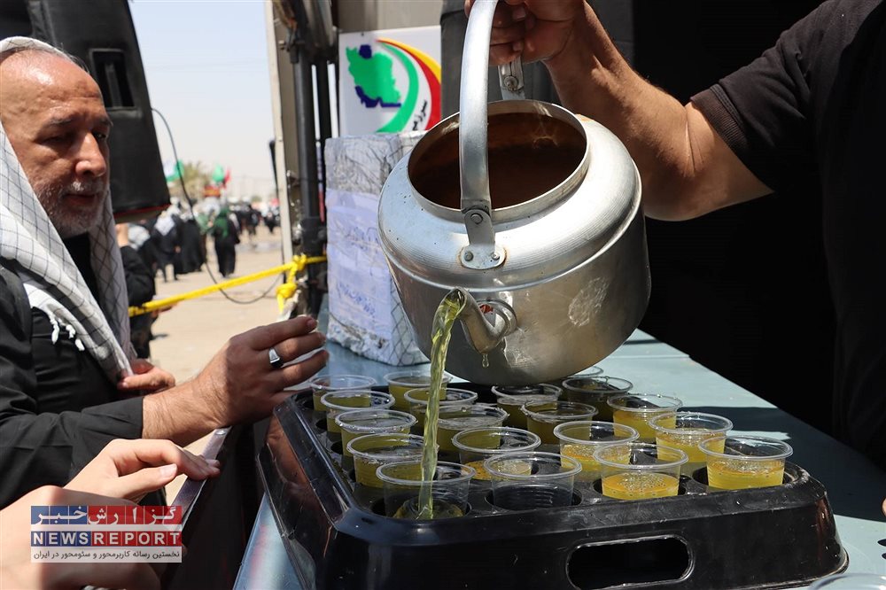 خدمت رسان موکب آبشار عاطفهها در مسیر اربعین 1404 از پنجره دوربین (17 مردادماه)